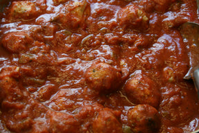 Ground turkey meatballs cooked in a marinara sauce with bell peppers and tomatoes. A lighter alternative to our classic meatballs marinara. These are smaller than our beef meatballs, typically 9 or 10 to the pound. If you prefer to order a specific quantity, please specify in the special instructions.